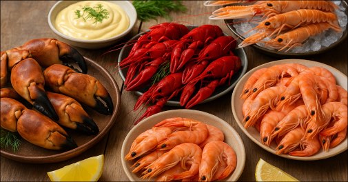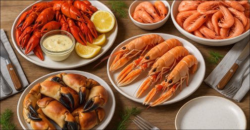 Nyd krabbeklør, rejer, krebs og jomfruhummer med frisk brød. En maritim smagsoplevelse i særklasse. Værdi kr. 295,-