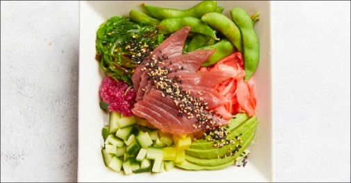Valgfri poke bowl med laks, tun, kylling eller vegetarisk variant – inkl. soya sauce og mulighed for takeaway - DEAL Pris kr. 99,- (normalpris kr. 129,-)